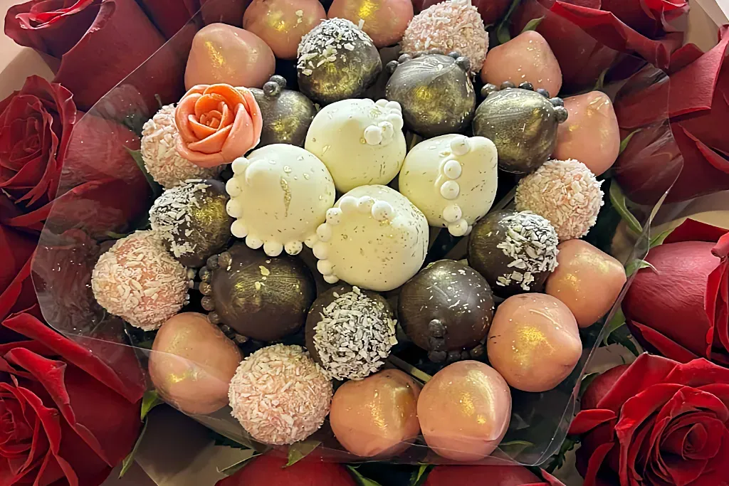 - Практичность. Такие букеты никто не выбрасывает. Они становятся отличным дополнением к ужину для двоих. Впрочем, полакомиться таким десертом можно в любое время независимо от повода или дня недели.